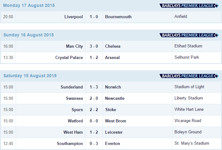 English Premier League WEEK 2 Results